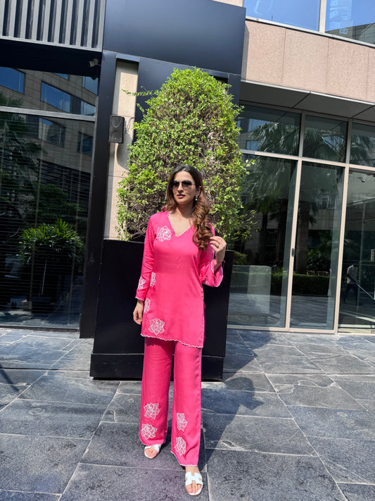 Pink Embroidered Co-ord Set