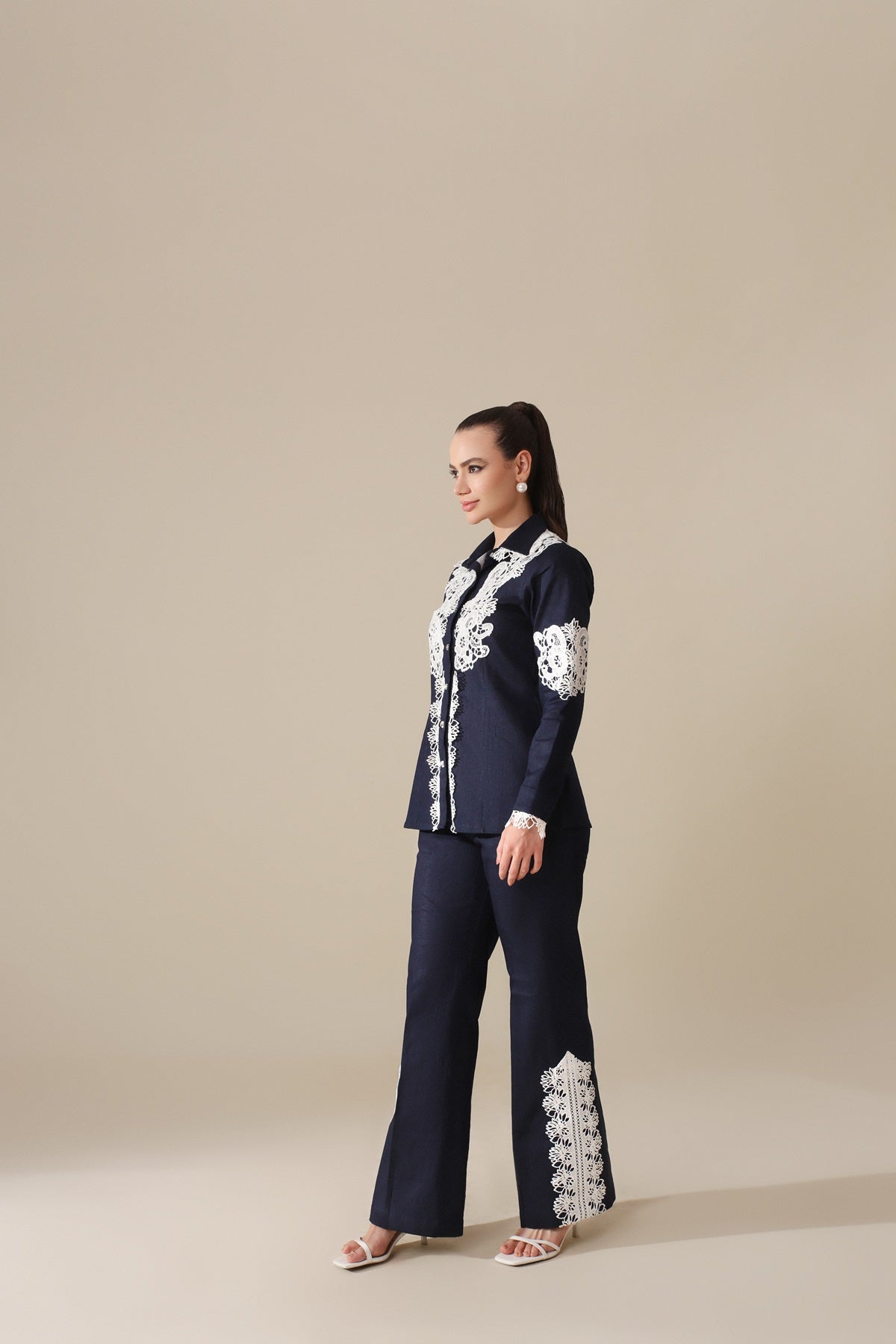 Meet the showstopper of our collection ā the Denim Lace Coordset. With its perfect fusion of modern style and delicate lace accents, this set is designed to turn heads. The top, 27 inches in length, complements the 40-inch pants for a flawless, well-balanced look. Effortlessly chic and versatile, this coordset is your ultimate style companion. Whether for a casual day out or a special evening event, itās the perfect combination of sophistication and trend. Make a bold statement with this must-have piece!