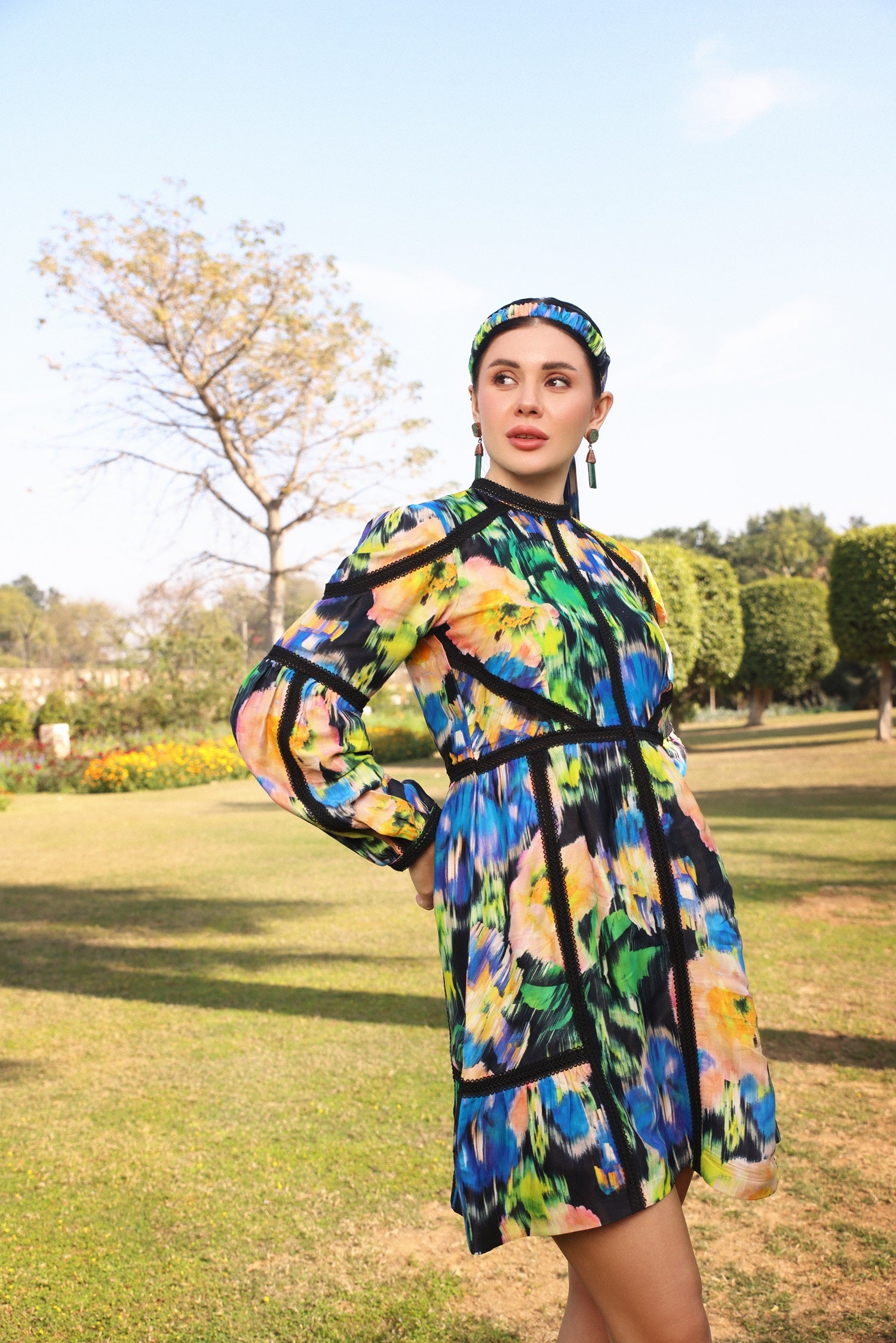 Step into the wild with this forest print mini dress, where nature-inspired charm meets contemporary style. The added touch of lace detailing adds a hint of elegance to your adventurous ensemble.