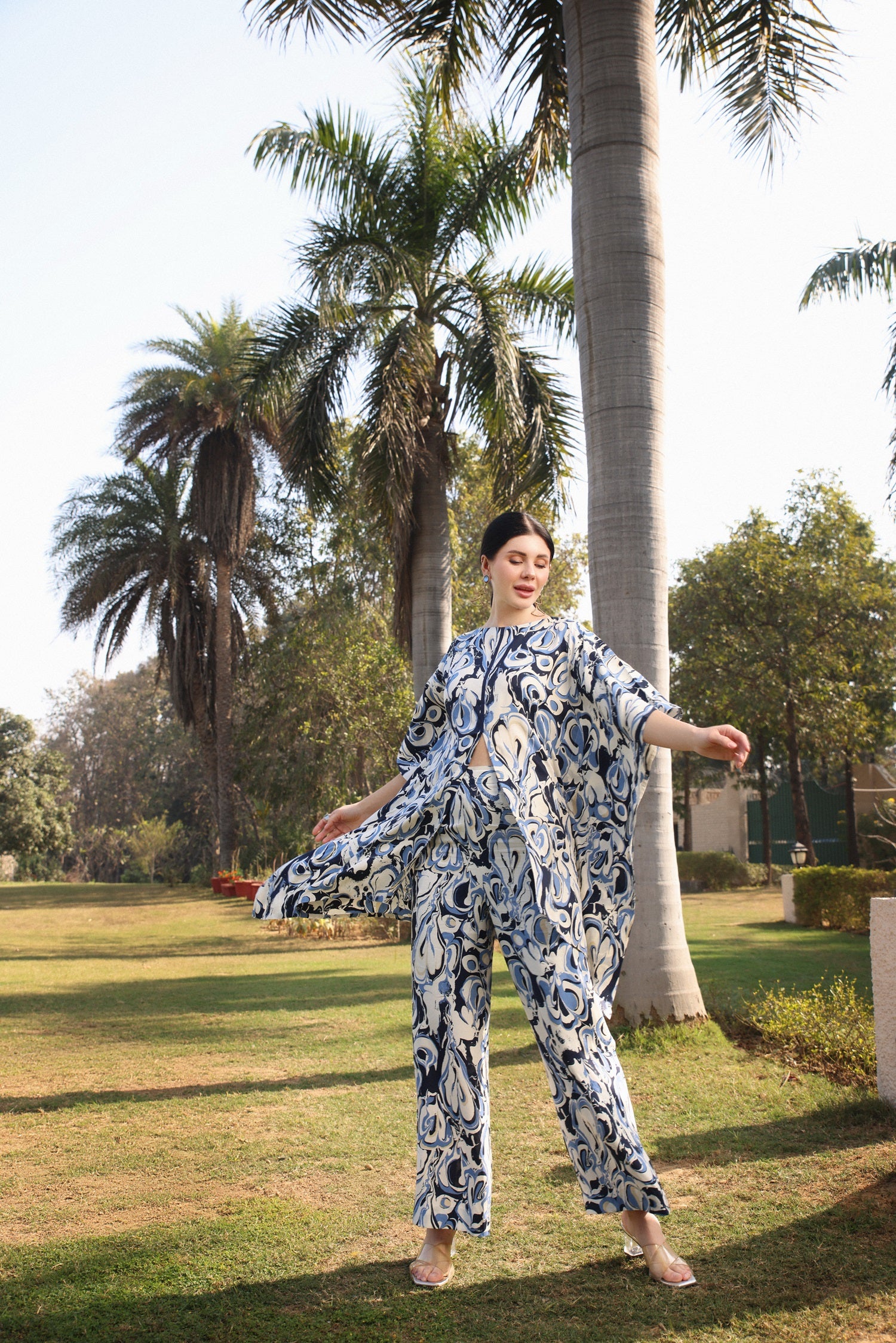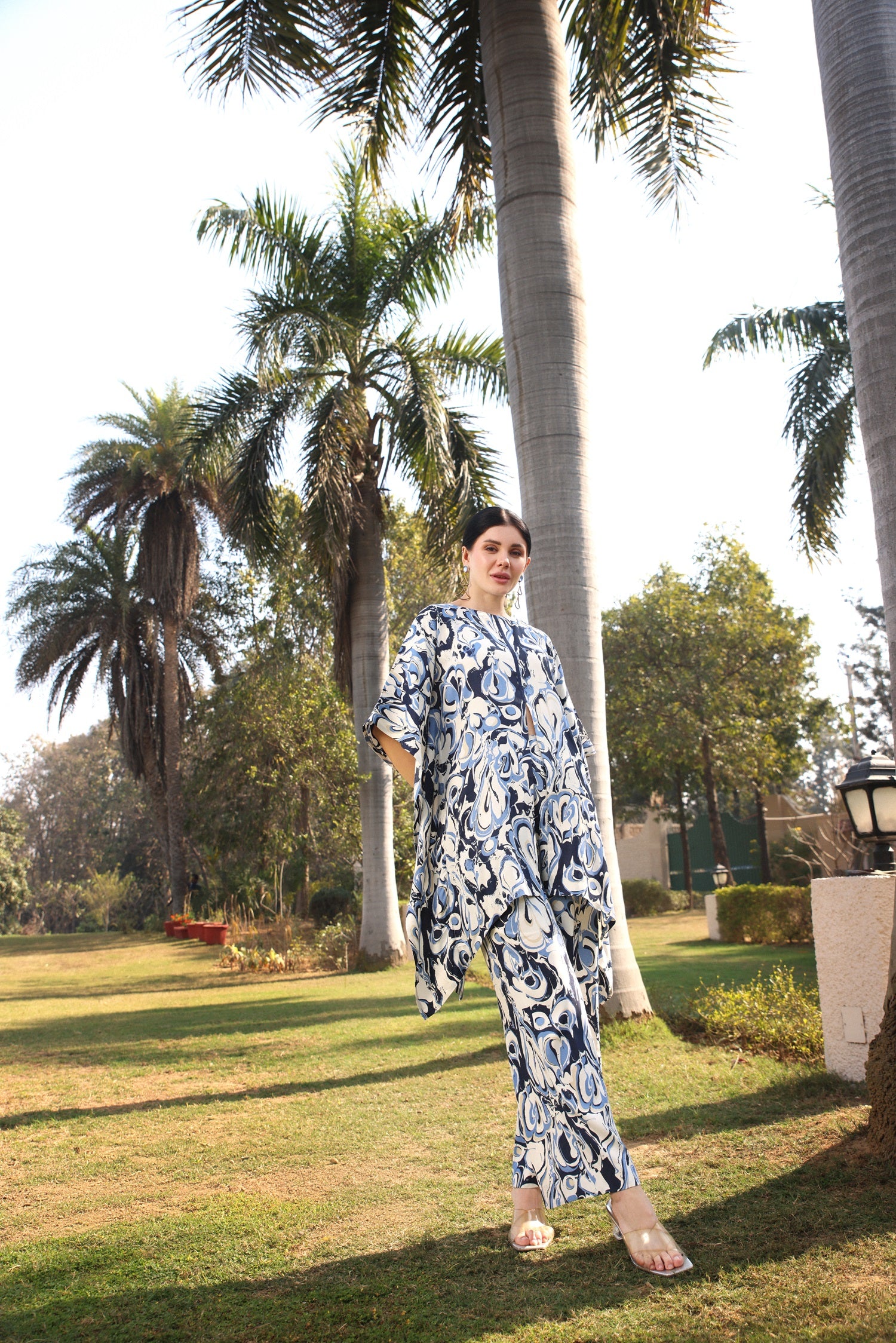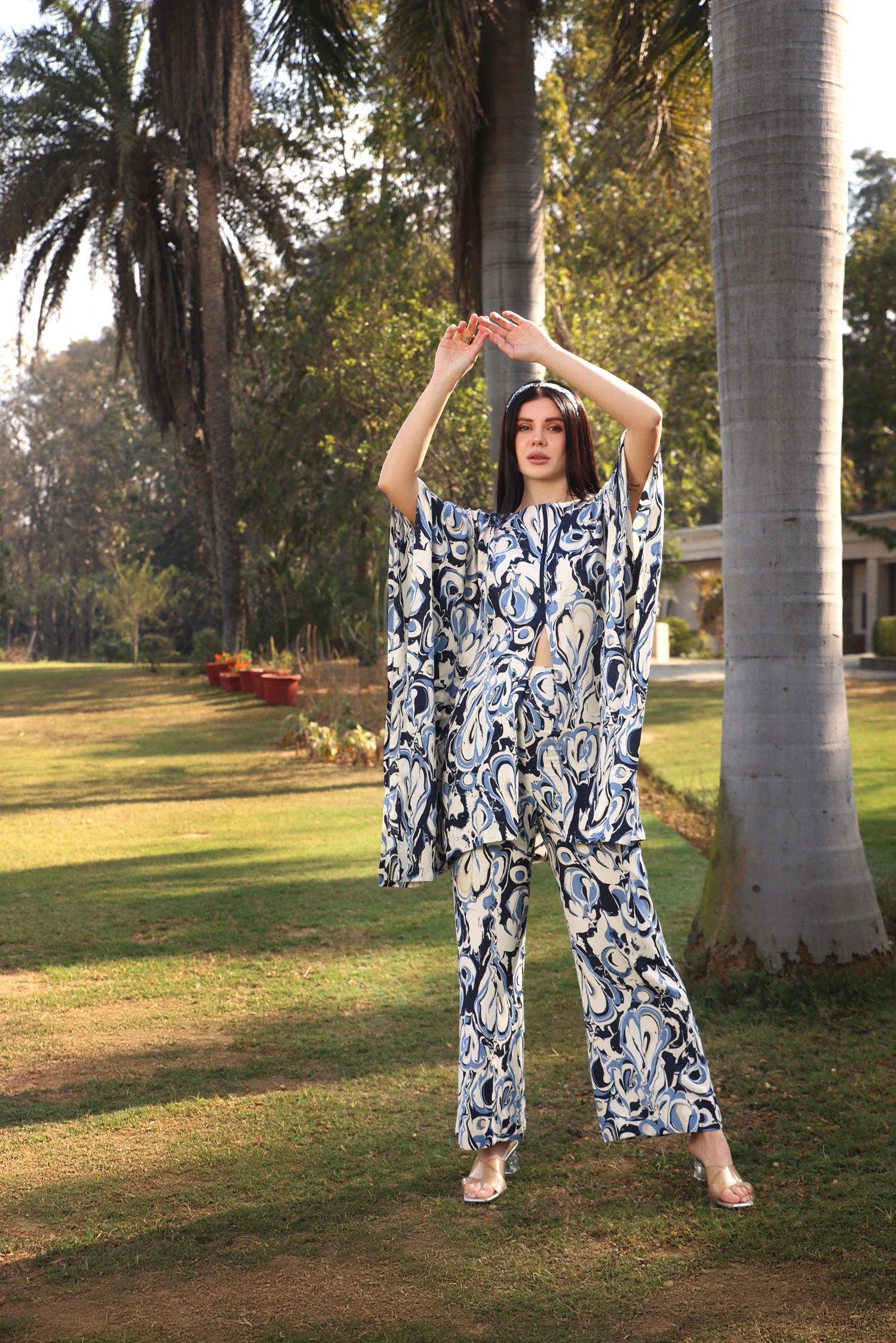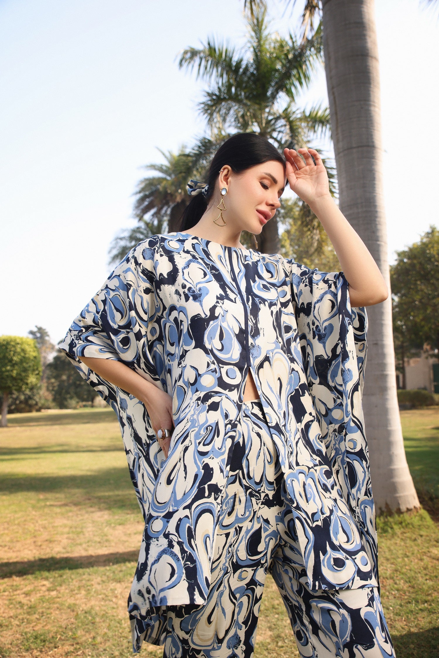 Indulge in the art of leisure with this indigo print kaftan set. Effortlessly chic and comfortably stylish, it’s the perfect choice for a laid-back yet refined look.
