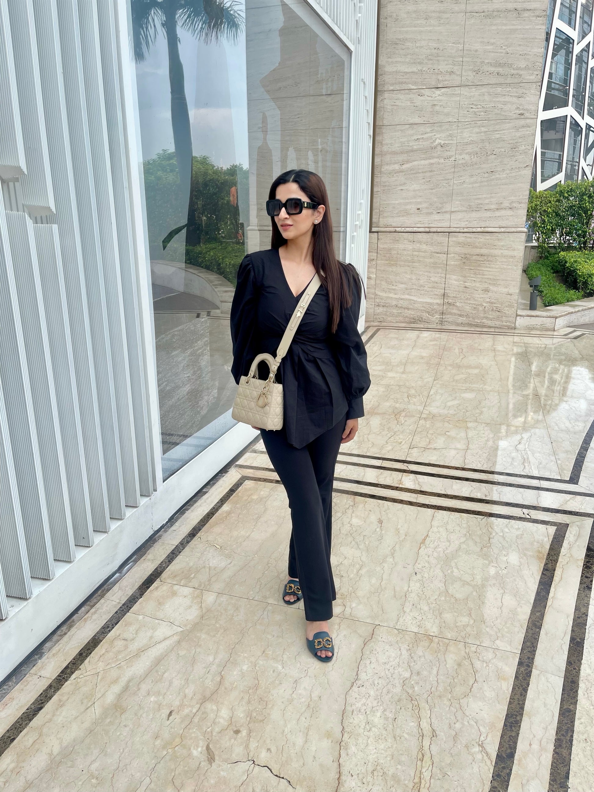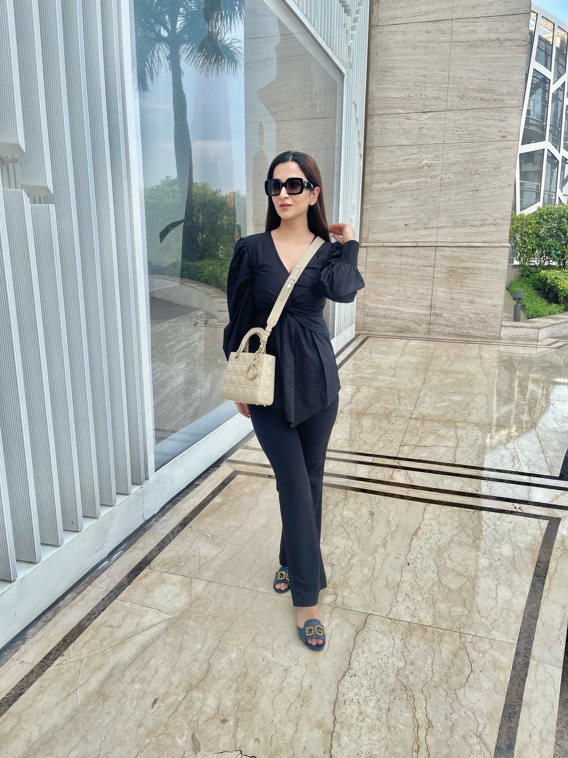 Elevate your style for a night out or a brunch gathering with your girls with this must-have set featuring a flattering V-neck, full sleeves, and captivating front twisted draped detailing. It's the go-to ensemble that effortlessly transitions from day to night, ensuring you look fabulous on any occasion.