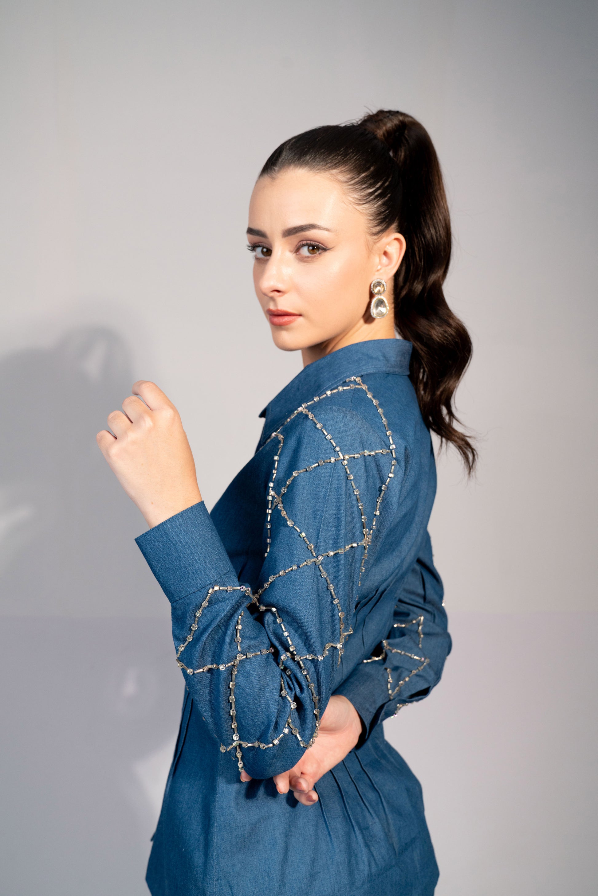 This hand-embroidered pleated co-ord set is crafted to give you a sleek and flattering silhouette. With delicate embroidery and elegant pleats, it’s the perfect pick for occasion wear—effortlessly balancing sophistication with modern charm.