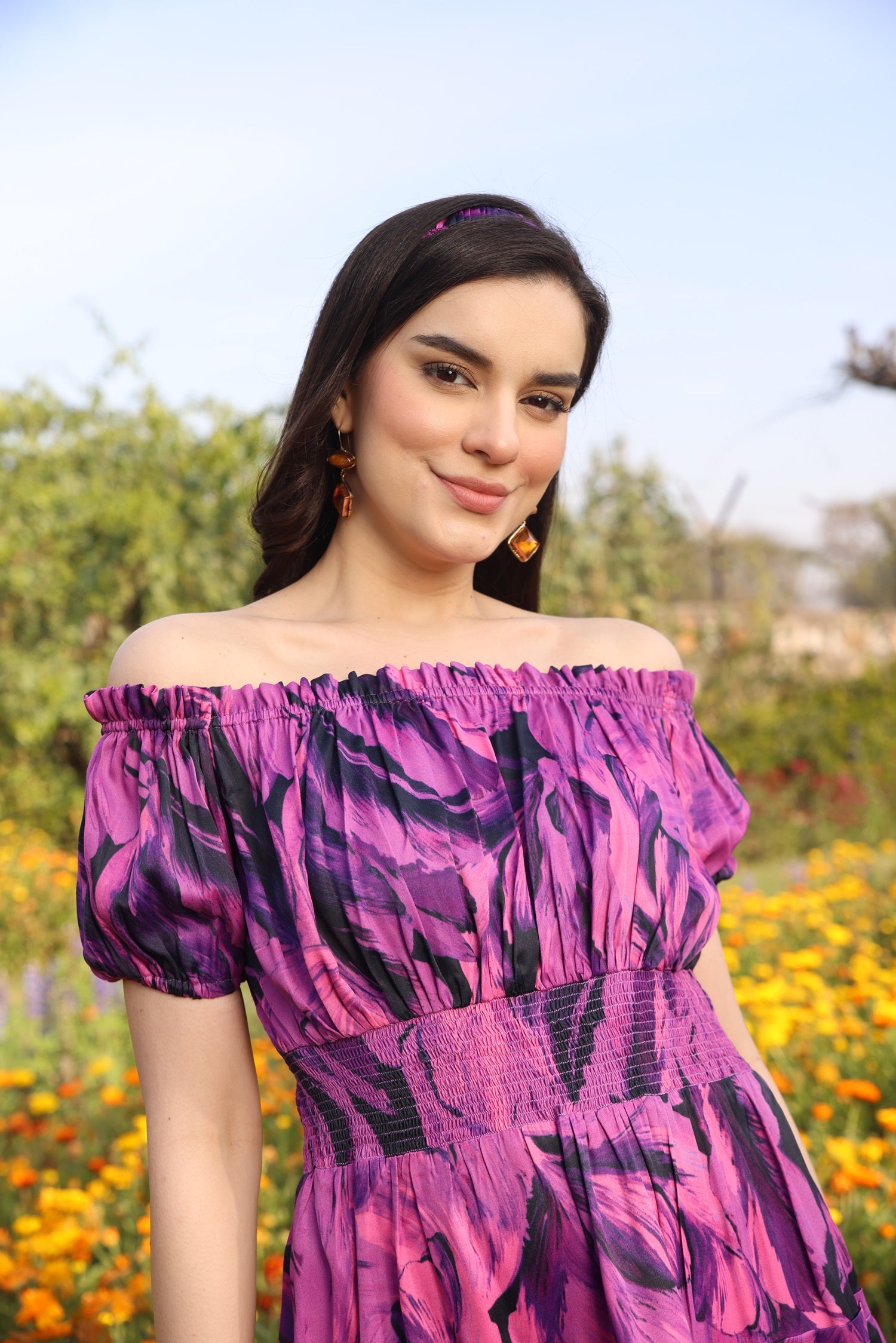 Step into chic with this off-shoulder mini dress, accentuated by a waist gather. Redefine your style with this contemporary and graceful piece.